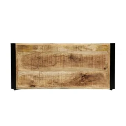 THREE MANGO WOOD SHELVES: Our storage unit offers three shelves to organize and display a variety of items in a convenient manner. These shelves are created with refined mango wood for a dense durability that resists wear and tear. With gorgeous golden browns and natural hues that come from spalting, each piece features a one-of-a-kind color.