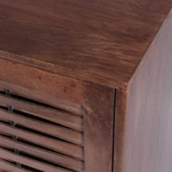 INDUSTRIAL BOHO: For a carefree, unconventional look and a variety of textures for your interior space, our cabinet brings an earthy boho touch to your decor by combining handcrafted mango wood with a faux wicker texture and an iron frame.